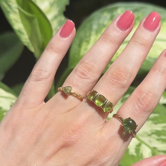Materials: Solid 14k yellow gold and green trillion cut gemstone.
